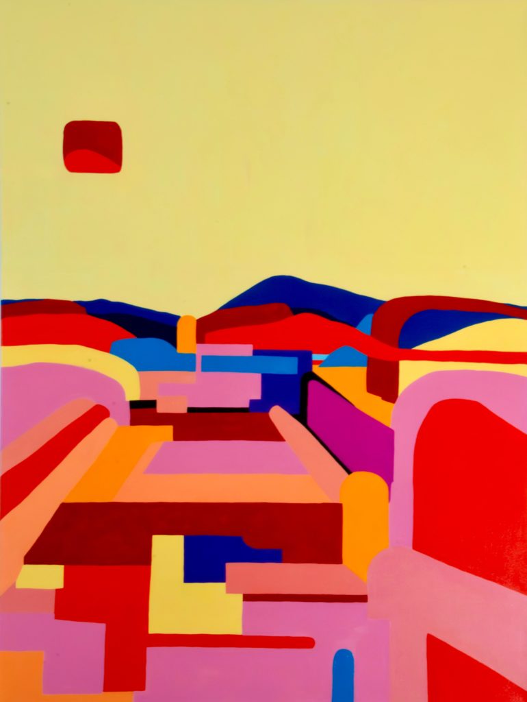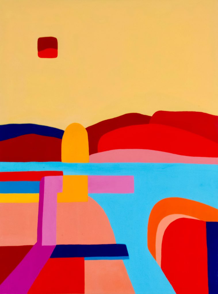 Her canvases, often large in size, do not reveal themselves at a single glance. They unfold over time, like interior landscapes to be explored. Faustine Crambes deconstructs and recomposes reality: landscapes, objects, and perspectives are transformed under her brush, guided by a geometry that is both rigorous and poetic.